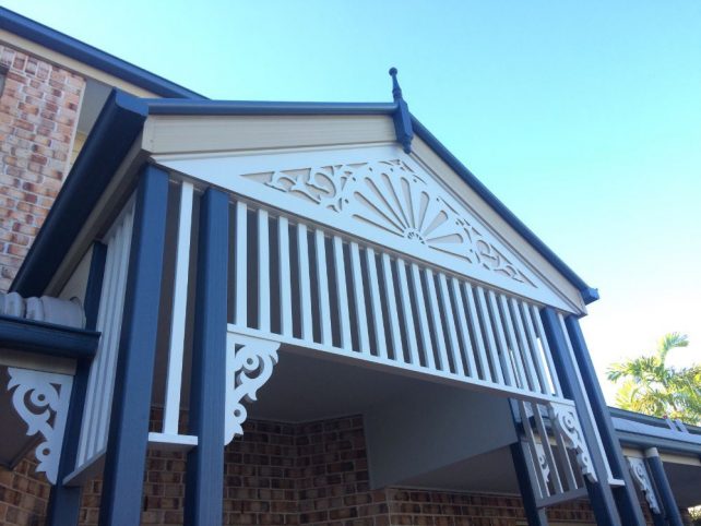 Exterior paint job on the front gable of a verandah. | Source: TWP Painting